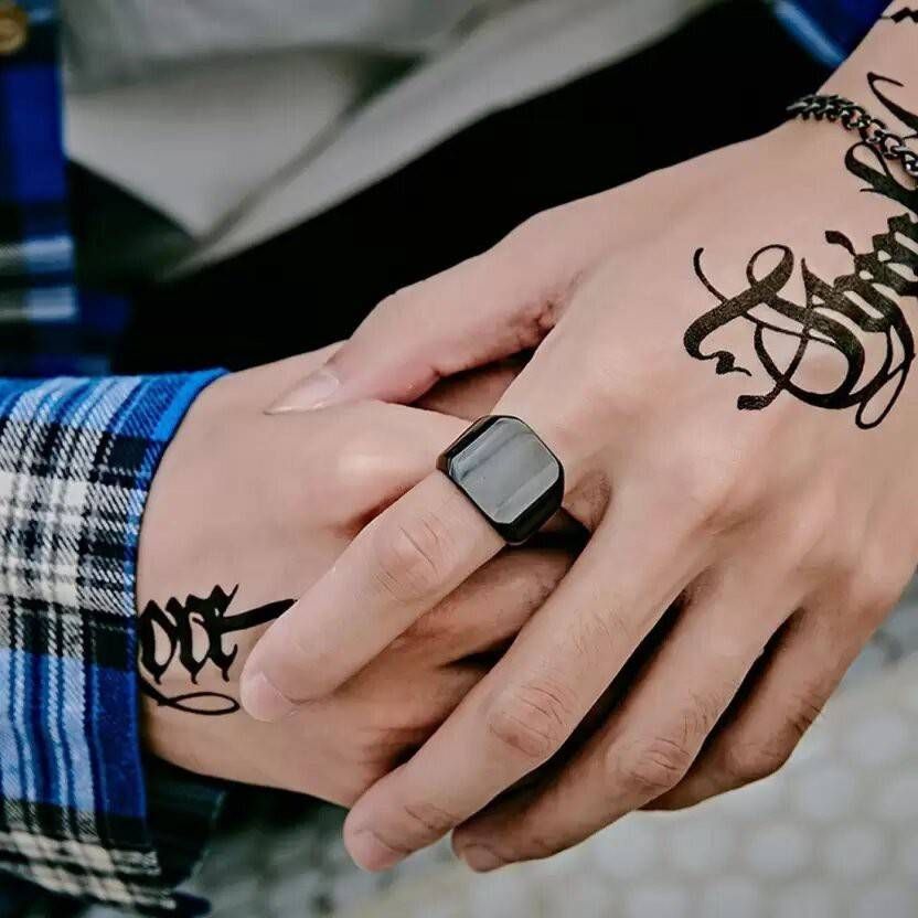 Product Name: Saizen Black Square Width Vintage Ring Black Silver Plated Ring for men and boys
